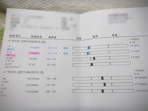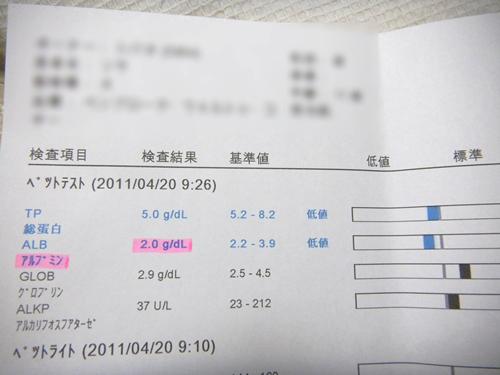 ALB(アルブミン)の数値が少し低いのですが、以前と変わらない2.0でした。