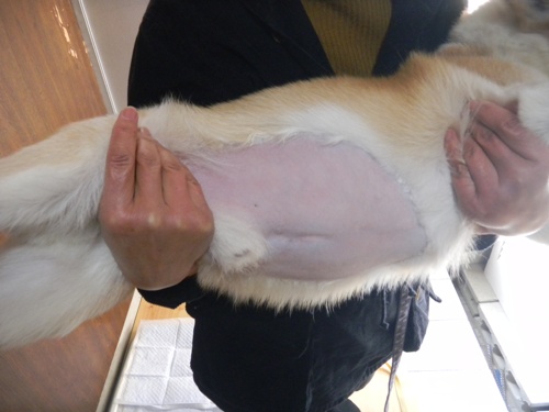 すぐにお腹の毛をバリカンで剃って、エコー検査実施。