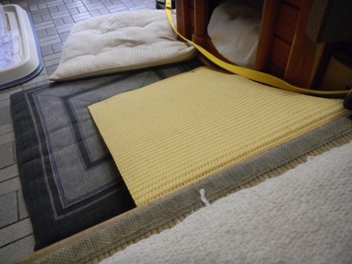 ・フローリングなど下が滑る場所では、後ろ足がすぐ開いてしまう。